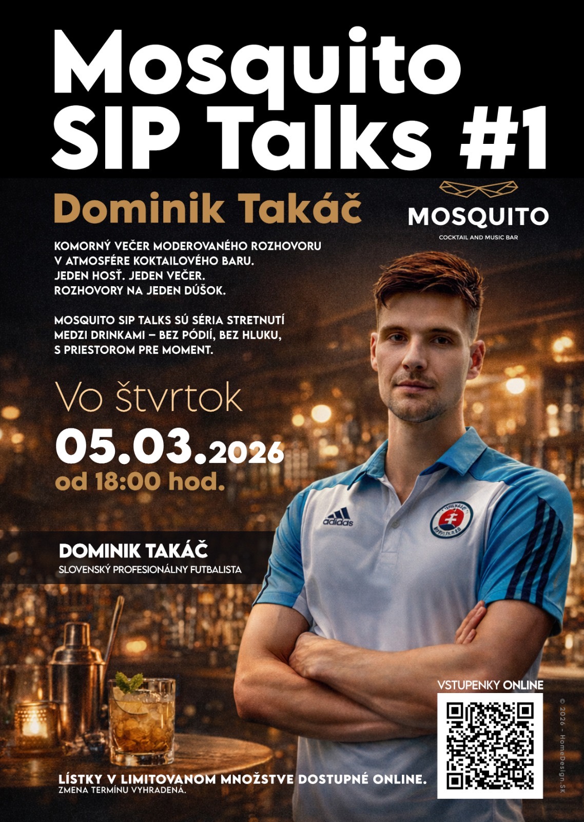 Podujatie sa koná v priestoroch Mosquito Cocktail Bar, ktorý pre tento večer pripraví špeciálne SIP menu – autorské drinky dostupné výhradne počas eventu.